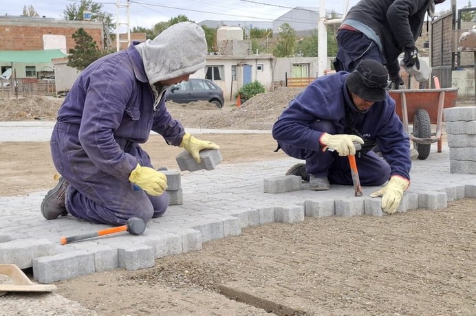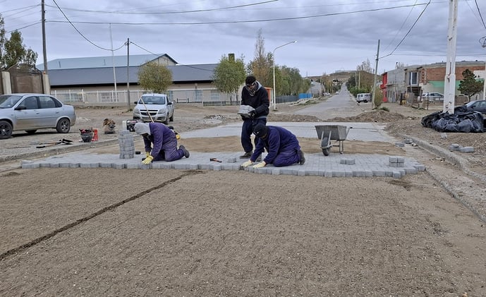 La Municipalidad de Caleta Olivia continúa ejecutando obras de adoquinado en el barrio 17 de Octubre y pavimentación de la calle Presidente Perón del barrio Vista Hermosa, con el objetivo de mejorar la infraestructura urbana.