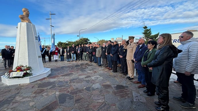 Asimismo, Martin resaltó la importancia de fortalecer la conciencia marítima en la Patagonia: «Ustedes están acá pegados al mar y esa conciencia marítima no la tiene todo el país. Todo lo que podamos hacer para que nuestro país conozca lo que es la Patagonia y lo que es el mar, y toda la riqueza que nos brindan, es importante». El acto cerró con ofrendas florales al busto de Brown y un reconocimiento a Martin y al vecino Miguel Arana, artesano naval quien promueve en sus obras el homenaje a nuestros héroes patrios.