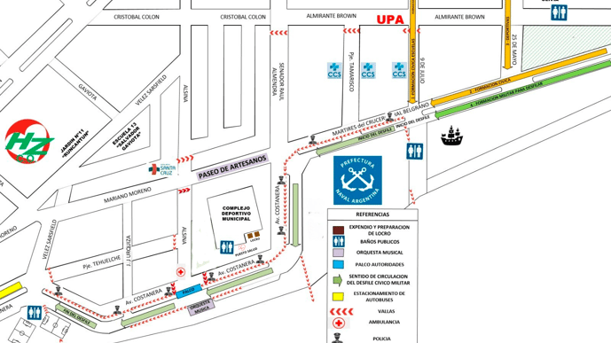 Mientras que las calles aledañas al complejo deportivo municipal “Ing. Knudsen” estarán cortadas para iniciar con los preparativos, pruebas de sonido, armado de carpas de artesanos y otras acciones previas al gran desfile cívico-miliar