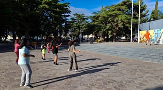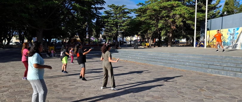 La propuesta cultural tuvo lugar en la plaza céntrica con la participación de instructores de fitness y baile. A lo largo de la tarde, compartieron clases distendidas con actividad física al aire libre.