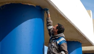 Demarcación de cordones y columnas en Av. Tierra del Fuego