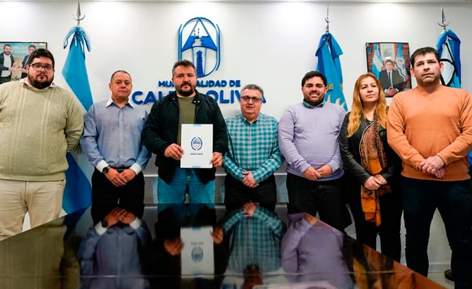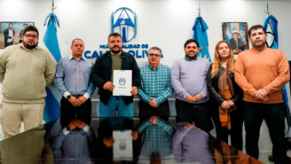 En el marco de una agenda de trabajo conjunta, que busca impulsar el desarrollo y ejecución de nuevas obras para la ciudad, el flamante jefe de la sucursal local de la empresa, Walter Jones, fue recibido esta mañana por el intendente Pablo Carrizo. El encuentro realizado este martes 6 de mayo contó con el acompañamiento del presidente de la firma, Marcelo de la Torre y el gerente comercial Pablo Cruz, además del presidente del Honorable Concejo Deliberante, Facundo Belarde, la concejal Iris Casas, y el secretario de Planificación Lucas Haidamaschuk.