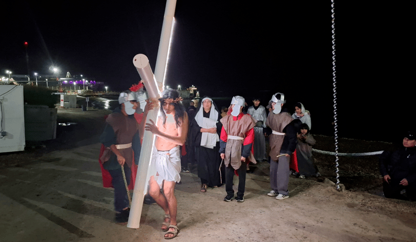 La innovadora propuesta de la Secretaría Socioeconómica, a través de la subsecretaría de Turismo de la Municipalidad de Caleta Olivia tuvo un importante acompañamiento de los vecinos la ciudad que se acercaron a la costanera local para disfrutar de una recreación de las 14 estaciones vividas por Jesús en su crucifixión, sepultura y posterior resurrección.