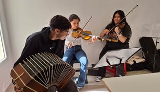 Erica Almazán, profesora y referente del proyecto, confirmó que ya se alcanzó el cupo base de 90 alumnos, priorizando la continuidad de estudiantes anteriores y asignando vacantes a quienes deseen sumarse. “Cada año renovamos: algunos cumplen 18 y parten a estudiar fuera, así que siempre hay lugar para nuevos talentos”, explicó. La iniciativa, que no requiere requisitos de conocimiento previo, incluye seis instrumentos: bandoneón, piano, violín, viola, violonchelo y contrabajo.